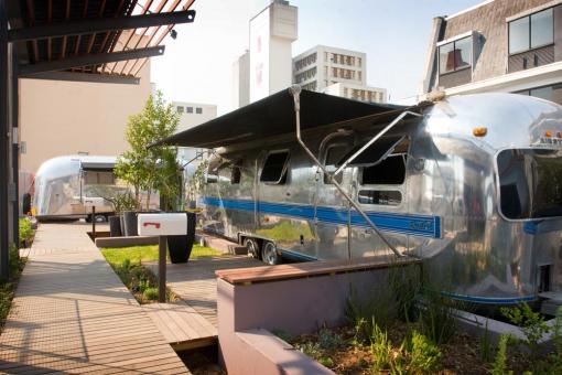 I should have seen this coming years ago when everyone started buying old Airstreams and revamping them into snazzy, modern campers and food carts. The trailer hotel could not be far behind.