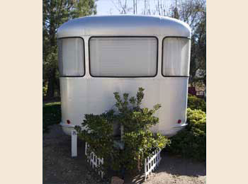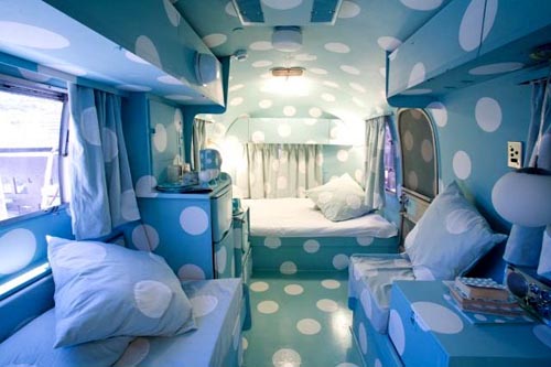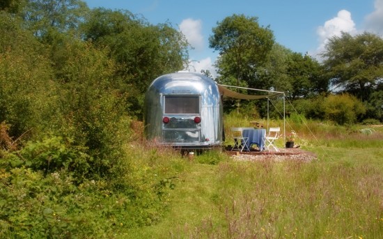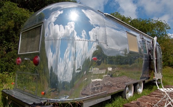 Airstreams for rent also come solo, for those who aren’t interested in the party atmosphere of the trailer park hotels. This one is located between Aberaeron and Lampeter on the West coast of Wales in a private meadow. Built in 1964 and totally redone it’s quite a nice way to play at traveling gypsy for a weekend.