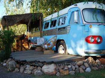 Imagined as an artist retreat in the desert of Southern California, this delightful hodgepodge of trailers opened in April 2010. In addition to your trailer (there’s 8 to choose from), there is also a saltwater pool, fire pit, horseshoes, archery range, rooftop hot tub, recording studio, and of course stunning views.