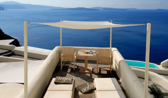 Everyone has a different idea of what’s romantic. But while I’m sitting at my desk on this Valentine’s Day watching it hail outside my window I’m thinking that we can probably all agree that the Mystique Resort on Santorini in Greece would make for a pretty sexy getaway. Unlike a lot of “romantic” hotels, there’s no frilliness here, just a modern and relaxing design. And draw-dropping views of the Aegean Sea.